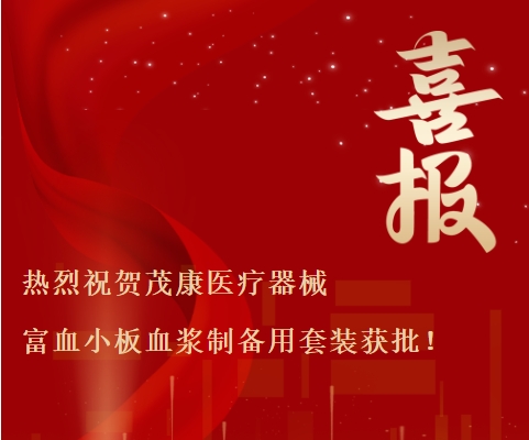安徽茂康醫(yī)療器械有限公司于2025年4月23日順利取得富血小板血漿制備用套裝注冊(cè)證!